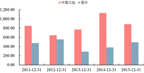 圖3:中材節(jié)能近五年國(guó)內(nèi)外營(yíng)收情況(單位:百萬(wàn)元)
