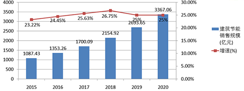 圖4:2015-2020年建筑節(jié)能市場(chǎng)銷售規(guī)模及增速預(yù)測(cè)